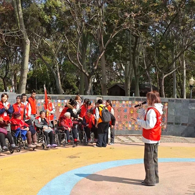 航海学院青年志愿者协会敬老行动:志愿者们陪伴12位奶奶漫步忠仑公园,小朋友们带来爵士舞、魔术表演与古诗朗诵,志愿者们献上手语舞《感恩的心》,还现场讲述雷锋生平故事,让老人们在春日暖阳中感受温情与敬意。